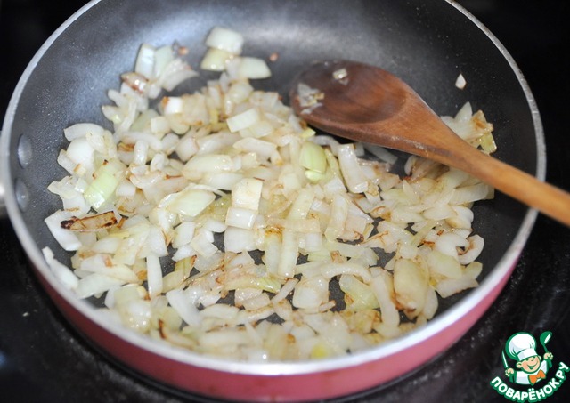 Зажариваем лук на сильном огне до румяности, периодически помешивая.
