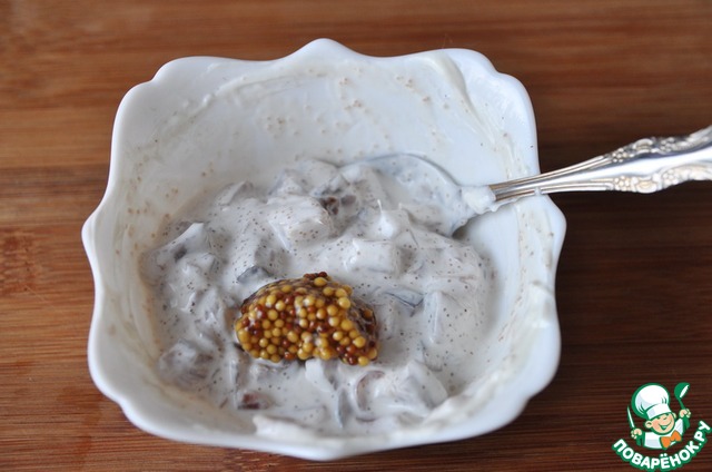 Добавляем французскую горчицу с зёрнами, перемешиваем.