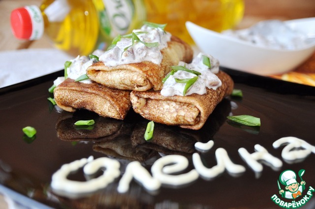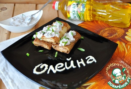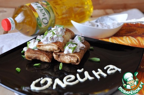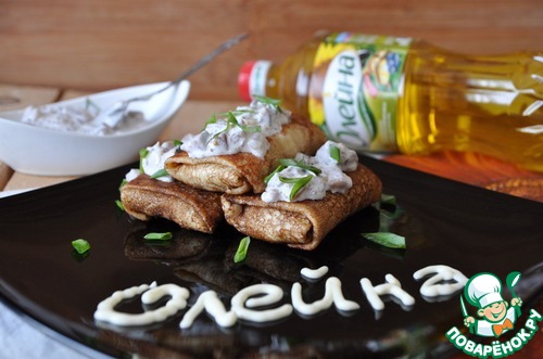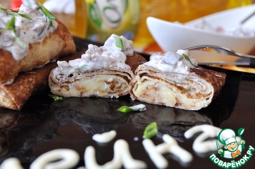 Блинчики с картофельным пюре и селедочным соусом
