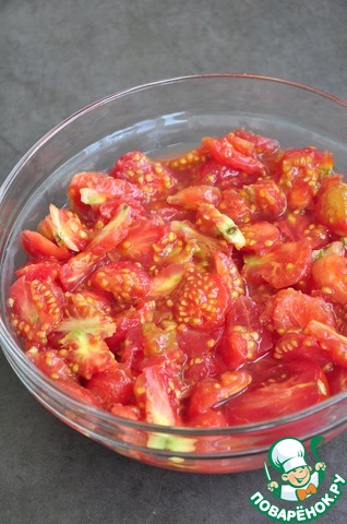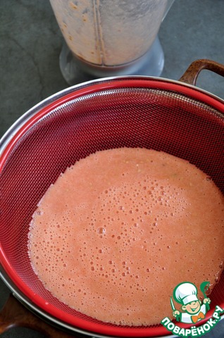 Сердцевину помидоров (или помидоры) отжать на соковыжималке.