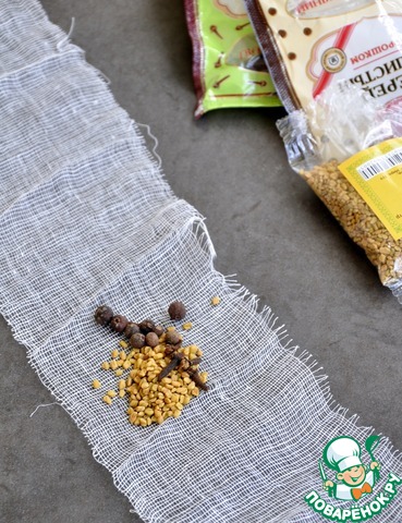Все специи уложить в стерильный кусок бинта или марли.