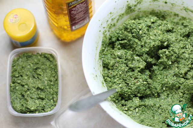 | Отличный рецепт для тех, у кого есть дача и кому жалко оставлять зелень под снег. Этим рецептом поделилась моя знакомая живущая в Канаде. Она с воодушевлением рассказывала о чудной заправке для салатов, супов и макарон, помазке на крекеры. Мои аргументы, что это очень похоже на итальянское песто, она и не хотела слушать, призывая лучше один раз приготовить. Теперь в моей копилке соусов прижился и этот. Приятно то, что не надо зацикливаться на поисках базилика. Я просто срезаю всю зелень в огороде, благо основной ингредиент петрушка или кинза, и за 20 минут готовлю не только это писту, но и заготовку на зиму. |