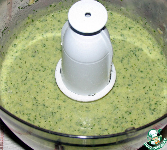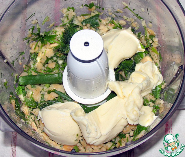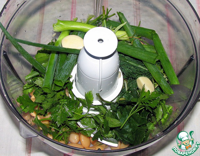 Фасоль я измельчила вместе с зеленью и чесноком.