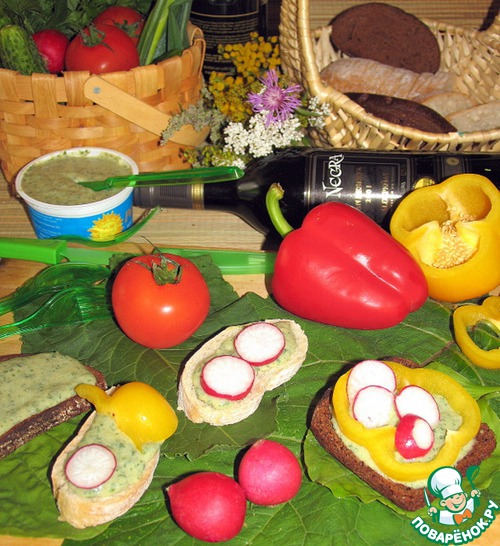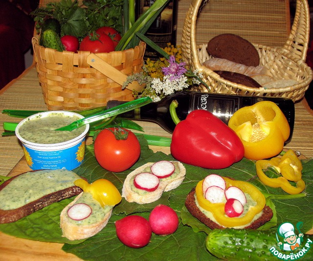 | "Дип"- соус консистенции густой сметаны для обмакивания в него кусочков овощей, мяса, морепродуктов... Идею этого рецепта я взяла из еженедельной газеты "День за Днём" у Ольги Семёновой - историк кулинарии, знаток домашней кухни. |