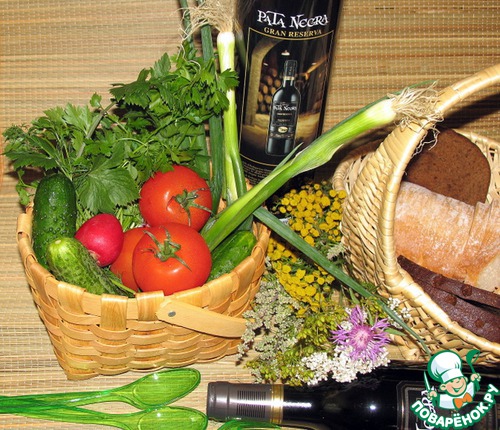 Остальные компоненты можно добавить на свой вкус. Я добавила зелень со своего огорода (с подоконника) - сельдерей, розмарин, петрушку. Зелёный лук, укроп и чеснок купила на рынке.