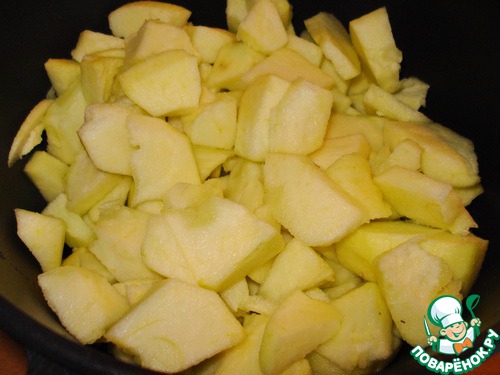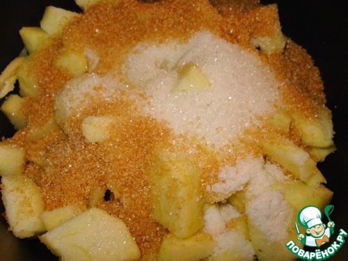В кастрюлю выложить клюкву, яблоки, всыпать сахар, добавить соль и лимонный сок.