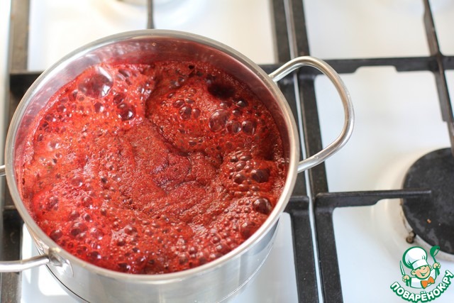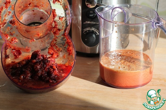 Складываем все ингредиенты (сок и жмых) в кастрюлю с толстым дном.