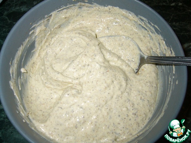 Грецкие орехи измельчить в блендере до состояния мельчайших кусочков (но не муки)