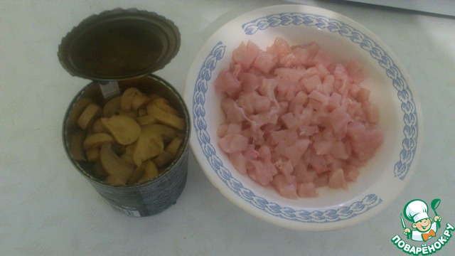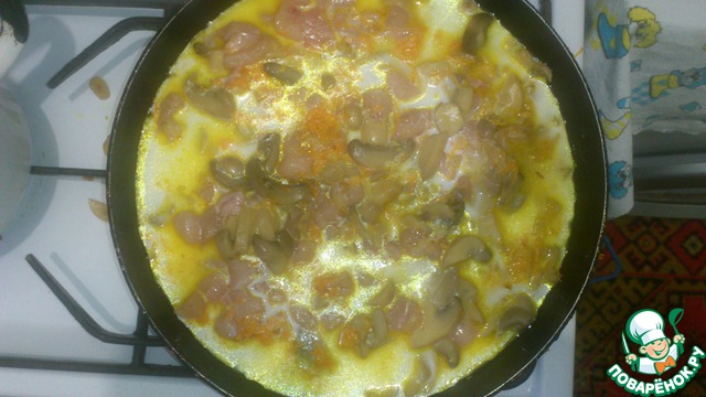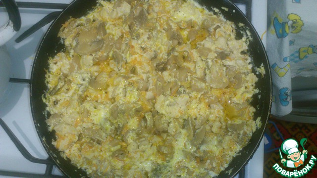 Курицу солим и вместе с грибами отправляем на сковородку