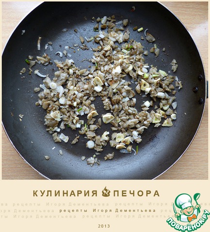 Грибы как можно мельче изрубить, обжарить на сковороде на сливочном масле (!)