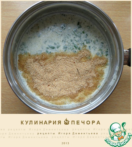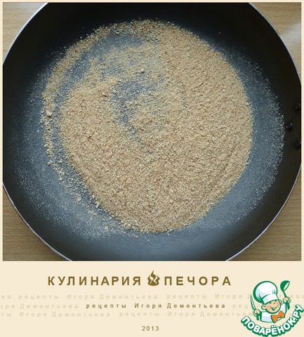Сухарную крошку обжарить без жиров, до изменения цвета (запаха каленого ореха)