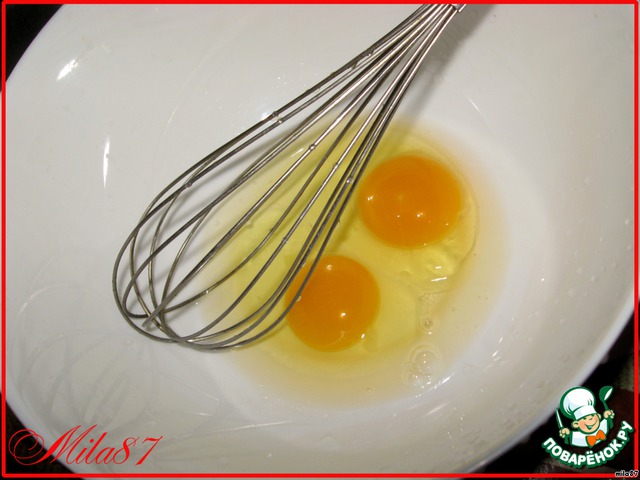 Яйца при помощи веничка слегка взбиваем с сахаром и солью.