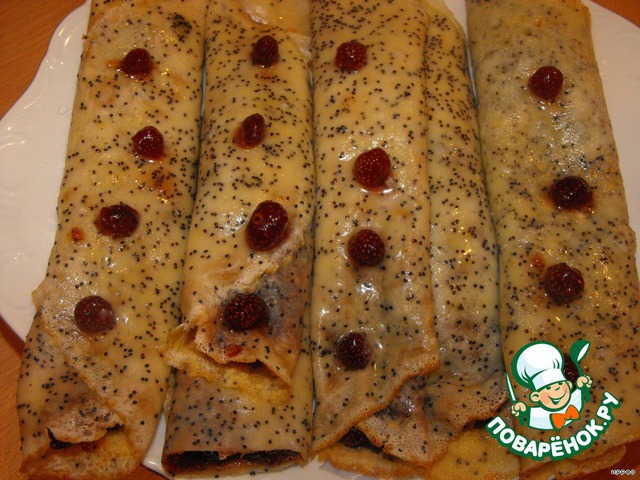 Маковые крепы с земляничным вареньем