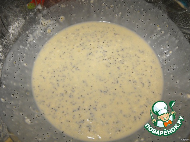 Смешать желток, сахар, масло, мак и соль + 1/2 стакана муки.