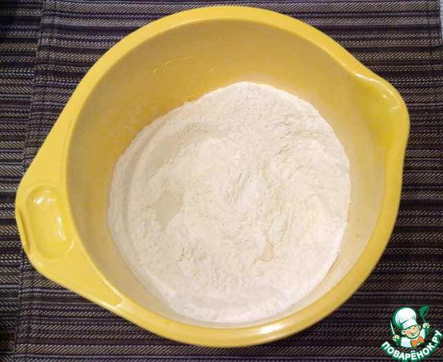 Для начала смешаем все сухие ингридиенты: муку, сахар, разрыхлитель, соду и соль.