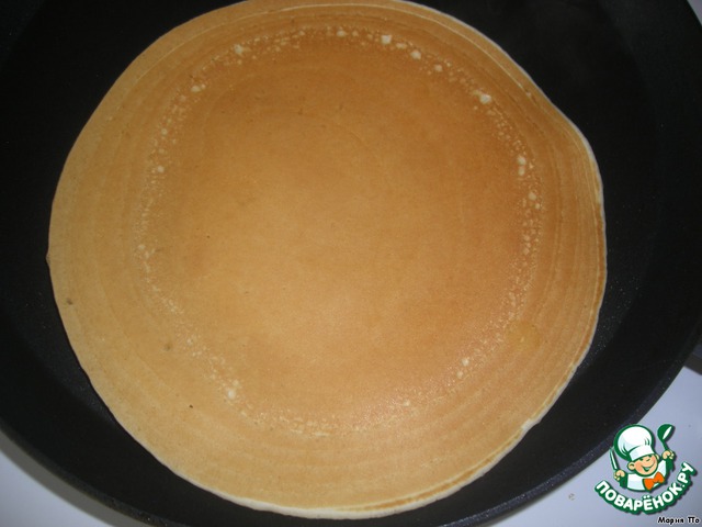Стопкой укладываем 2-3 блина. Сверху выкладываем банан.
