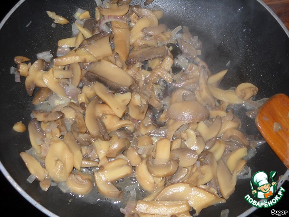 На середину блина кладем грибы, где-то 1-2 ст. ложки.