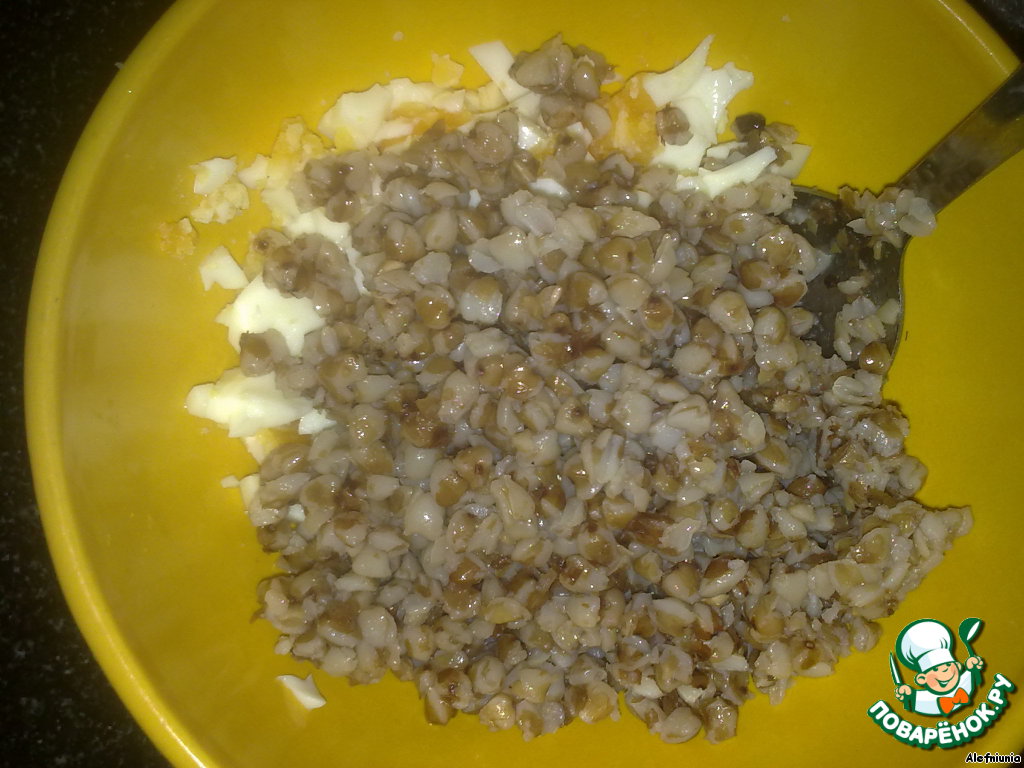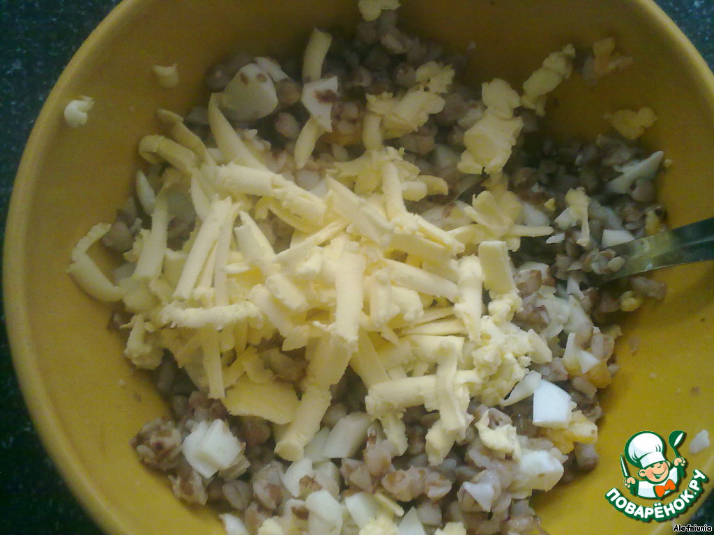 Сверху трем масло и перемешиваем начинку, посолив ее.