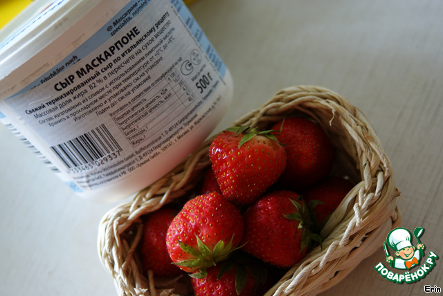 Из сыра, клубники, молока и сахарной пудры делаем начинку.