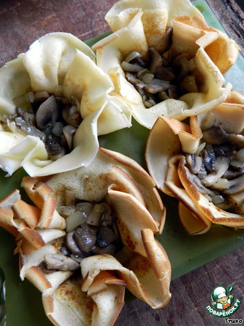 Форму для маффинов или кексов смазать сливочным маслом и уложить блины.