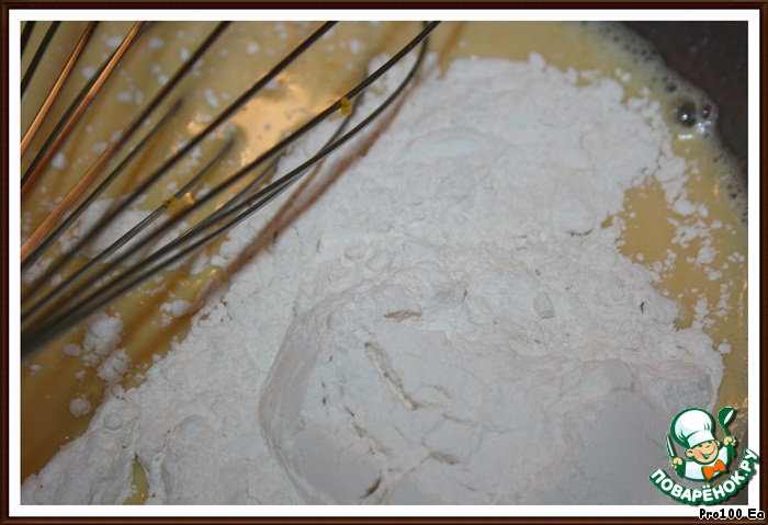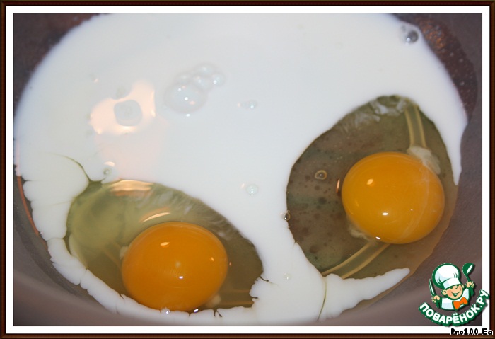 3. Соединить яйца, сахар и молоко и веничком взбить.