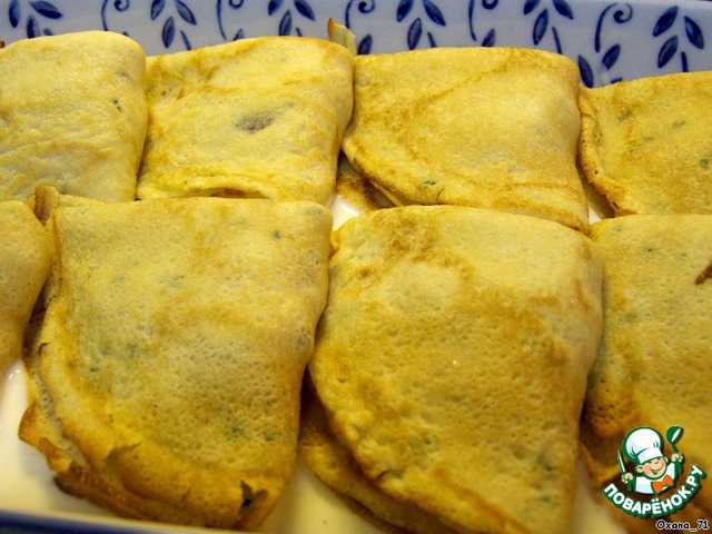 Для этого рецепта нам нужно сделать блинчики не ажурные и не очень тонкие, а также не сладкие.
