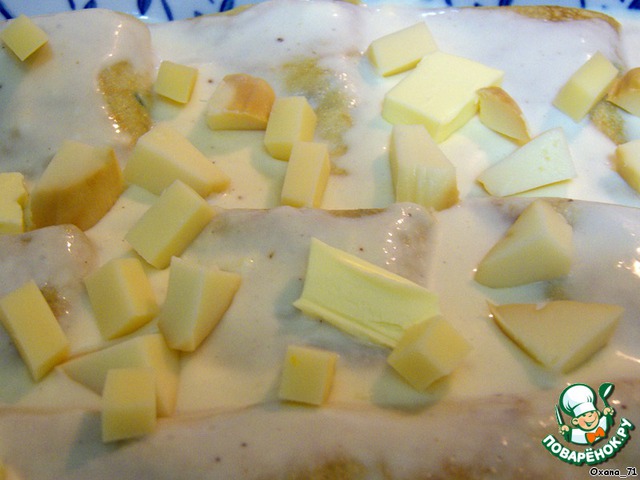 Посыпаем тёртым сыром или, как в моём случае, кубиками сыра.
