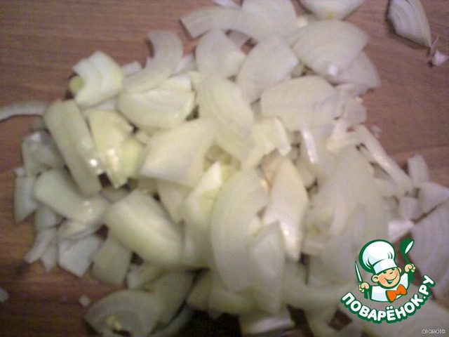Для приготовления начинки 2 луковицы почистить, мелко нарезать и положить в сковороду с разогретым растительным маслом.
