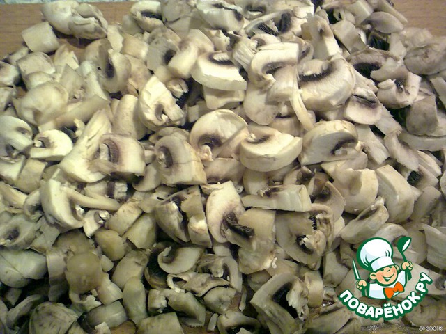 Грибы почистить, мелко нарезать. Добавить к луку.
