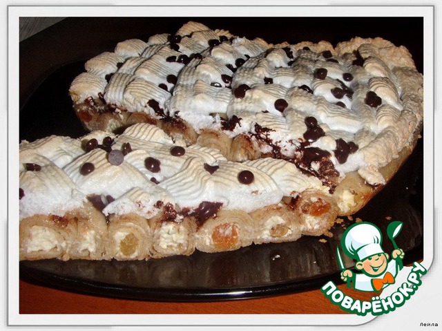 Для детей отдельно. Скатала в трубочки, выложив в смазанную форму маслом, сверху взбитое безе.