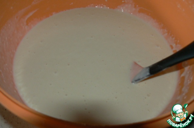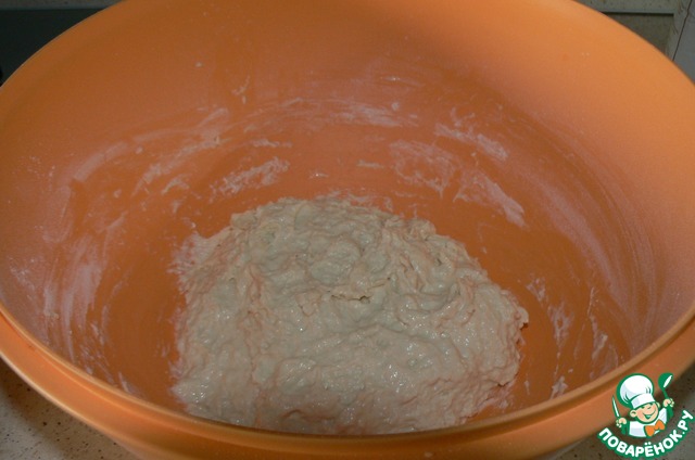 Всыпать 500 г. муки, размешать до гладкости, накрыть и поставить в теплое место примерно на 1 час.