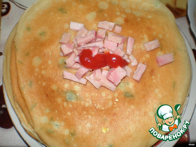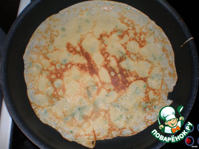 Смешать молоко, яйца, соль, перец, петрушку, муку – должно получиться тесто блинной консистенции.