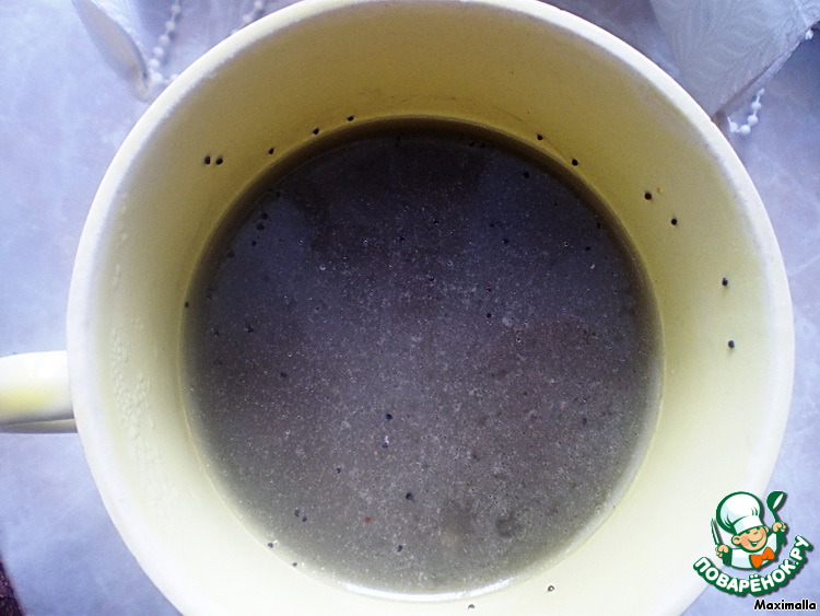 Для начала нужно замочить мак. Для этого залить его кипятком, накрыть крышкой и оставить на час-два.