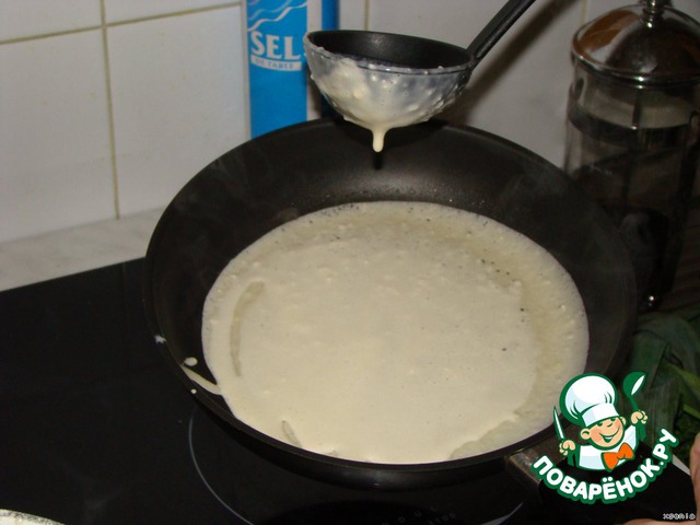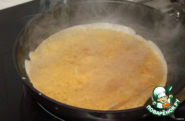 Затем смазывем сковороду маслом (cмазываем только перед первым блином... затем не надо)