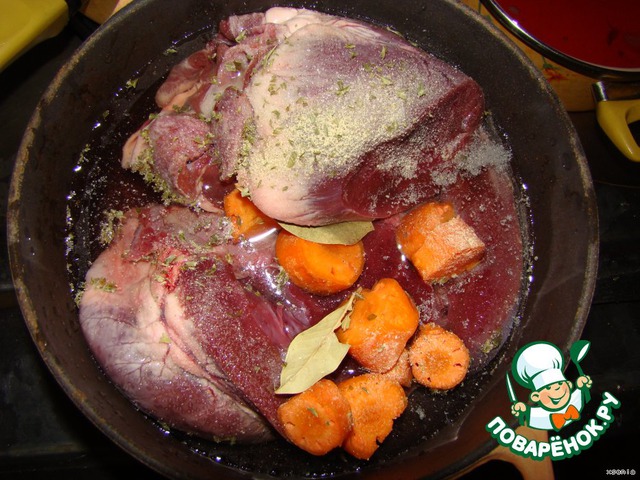 морковь почистить... нарезать...+ лавровый лист... соль.. перец... специи... заливаем водой, закрываем крышкой, тушим не менее часа