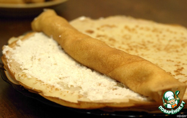 Блинчики-рулетики с творогом