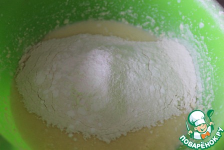 Добавляем муку, соль и разрыхлитель, взбиваем.
