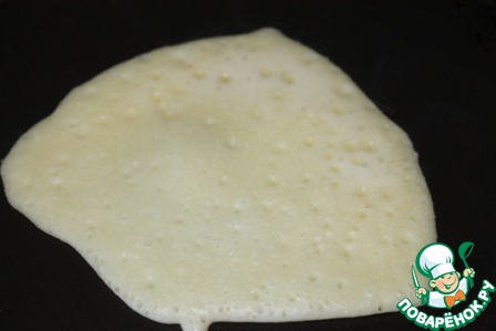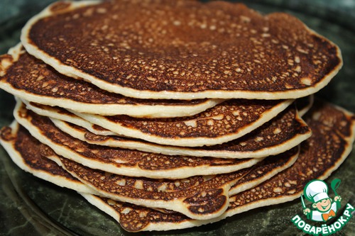 Выпекаем на раскалённой сковороде, один раз смазанной растительным маслом. Панкейк переворачиваем на другую сторону, когда пузырики полностью подсохнут, по 2-3 мин. с каждой стороны.