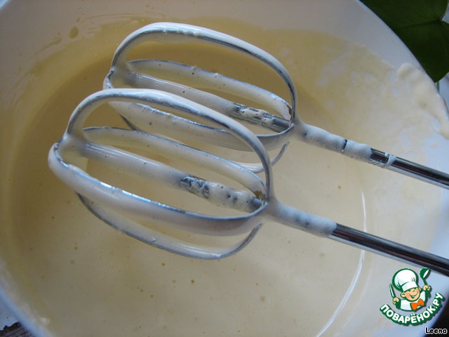 Тесто вначале готовим совершенно так же, как на бисквит. То есть взбиваем яйца в крепкую пену;