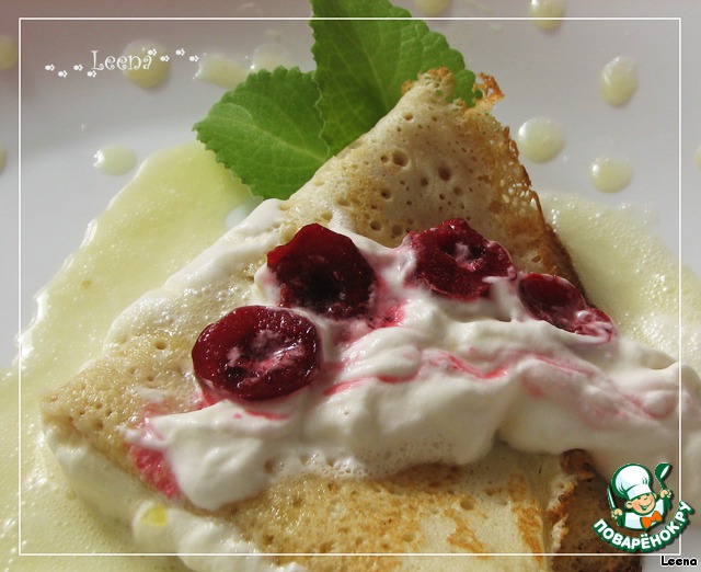 Бисквитные блины с апельсиновым сиропом и взбитыми сливками