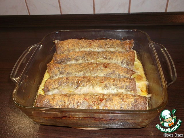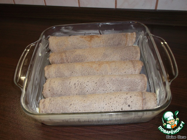 Духовка разогрета до 200*C, ставим наши блины в духовку на 30-35 мин.