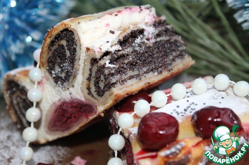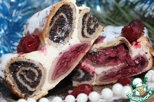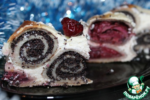| Очень яркая, безумно вкусная запеканка. Вишнёво-маковая начинка завёрнутая в блинчик в сочетании с творожно-сливочным кремом это невероятно вкусно, а в приготовлении достаточно просто. Вот так, на первый взгляд, обычная запеканка может прекрасно украсить ваш праздничный стол!!! |