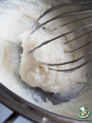 Добавить в протертую кашу еще 1,5 стакана муки, желтки (перетертые с сахаром), соль и влить еще 1 стакан теплого молока. Все соединить с тестом, перемешать и оставить, чтобы поднялось.