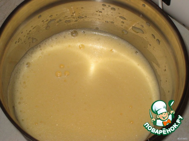 Постоянно взбивая постепенно влить горячее молоко.
