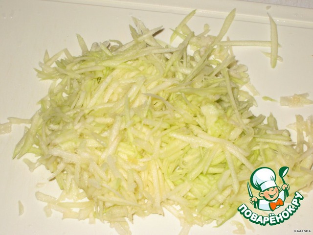 Кабачки очистить от шкурки и семечек и натереть на крупной терке.