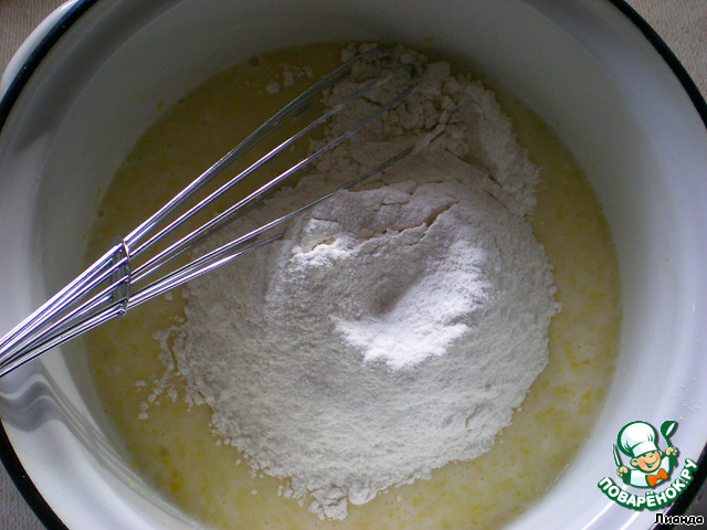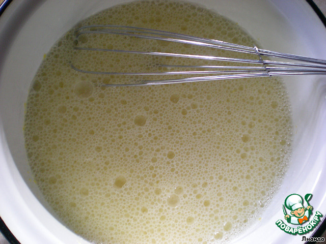 Влить 1 стакан молока и взбить венчиком, чтобы растворился сахар.