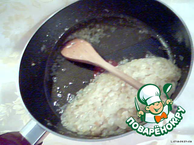 Лук пассеровать до золотистого цвета и прозрачности на небольшом огне.Затем наклонить сководку,чтобы масло стекало вниз,лук оставался вверху.