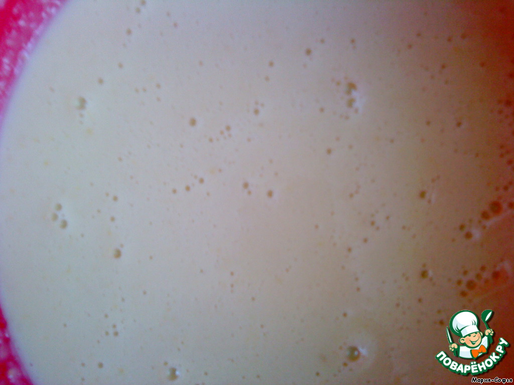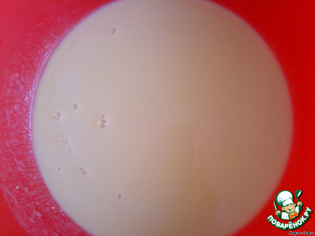 Влить в тесто молоко и хорошо перемешать. Оставить тесто отдохнуть на 30 мин.
