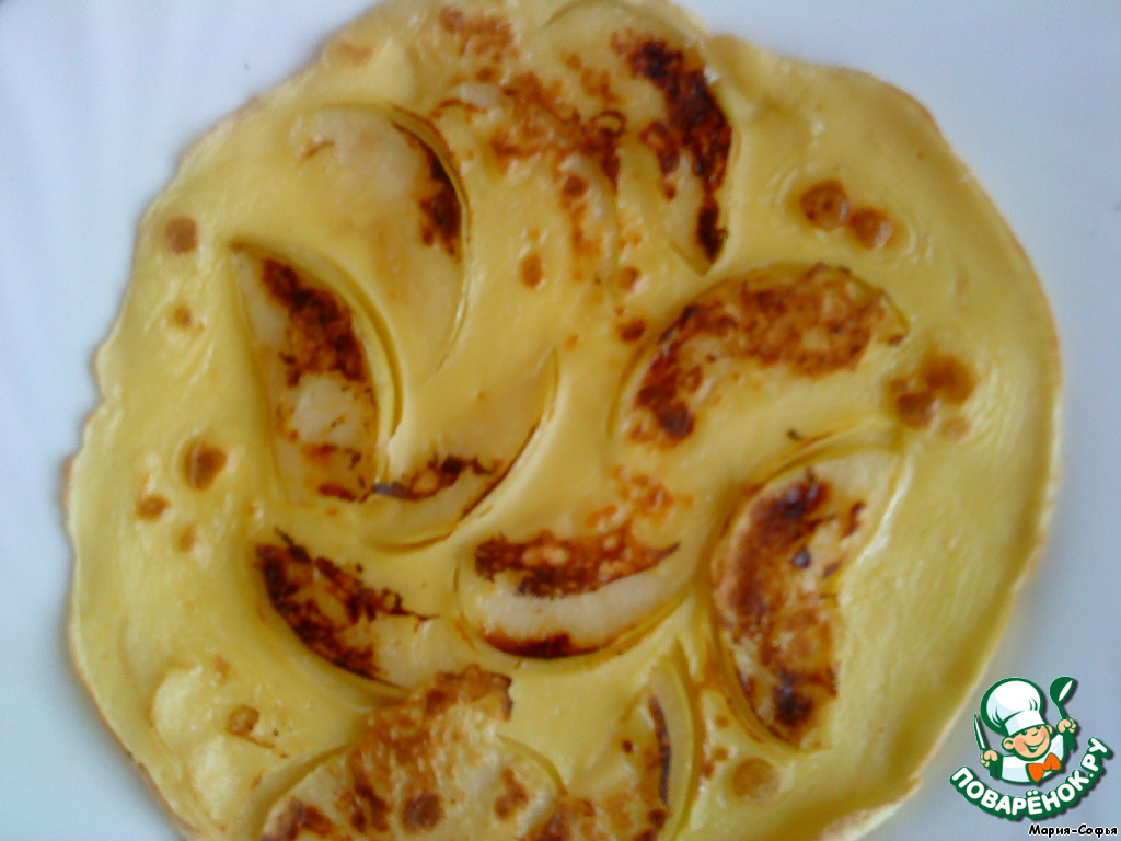 Яблоки залить тестом. Яблоки должны оказаться в середине блинчика.