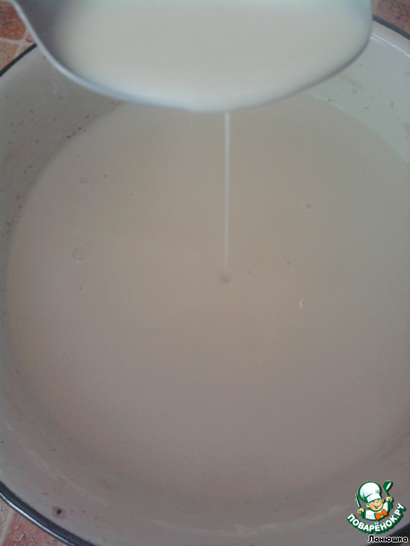 Теперь влить оставшееся молоко. Перемешать до однородности.